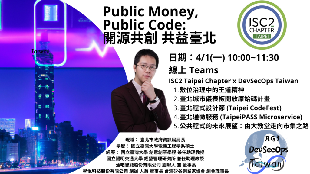 Public Money, Public Code: 開源共創 共益臺北 趙式隆局長 / 2024年04月01日 2024年, 活動記錄 / DevSecOps Taiwan DevSecOps Taiwan x I